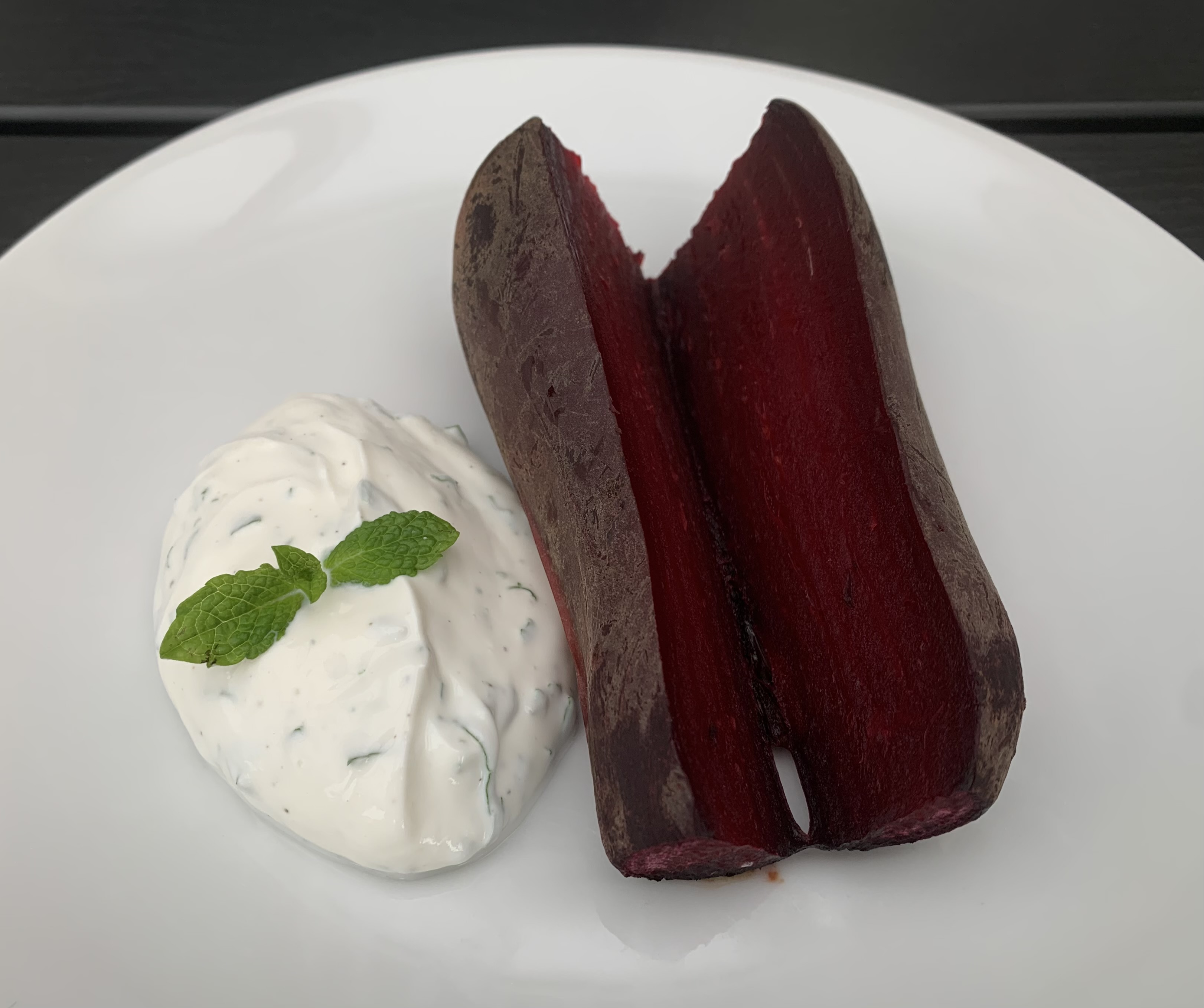Server de bagte rødbeder med myntedressing til stegt kød.