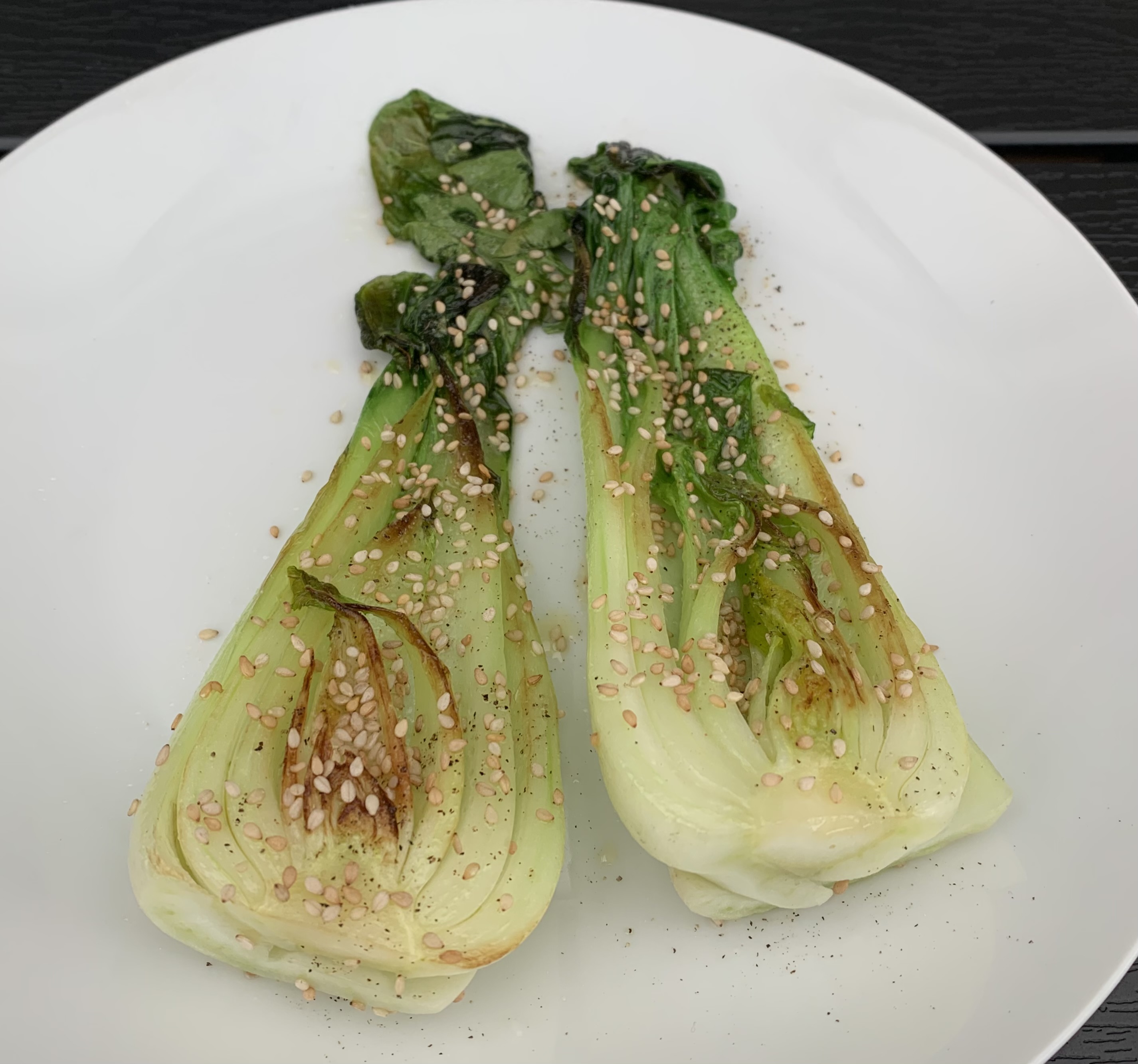 Opvarm olivenolie på en pande og steg pak choi i 2-3 minutter.